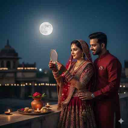 - व्रत पारण: चंद्र पूजा के बाद, महिला उसी छलनी से पहले चंद्रमा के दर्शन करती हैं और फिर अपने पति का चेहरा देखती हैं। इसके बाद, पति के हाथों से जल पीकर और मिठाई खाकर व्रत का पारण (समापन) किया जाता है।